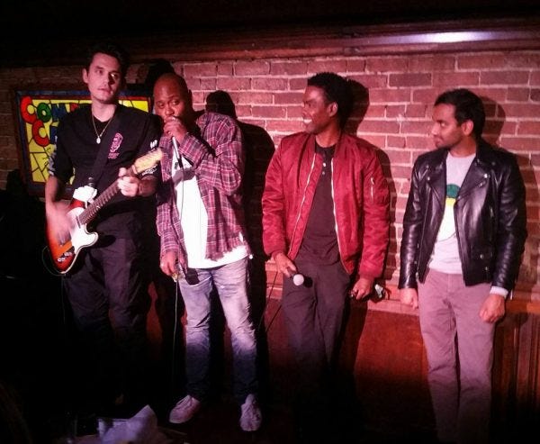 John Mayer, Dave Chappelle, Chris Rock and Aziz Ansari at the Comedy Cellar